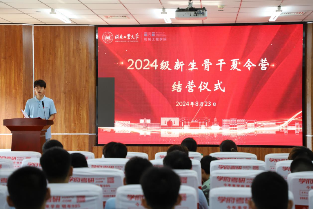 接着,优秀营员代表李佳贺发言。他总结了夏令营过程中的所见所感,表达了将继续发扬机械学子勤劳奋斗的品质,践行“勤慎公忠”的校训,努力践行青年人的责任与担当。