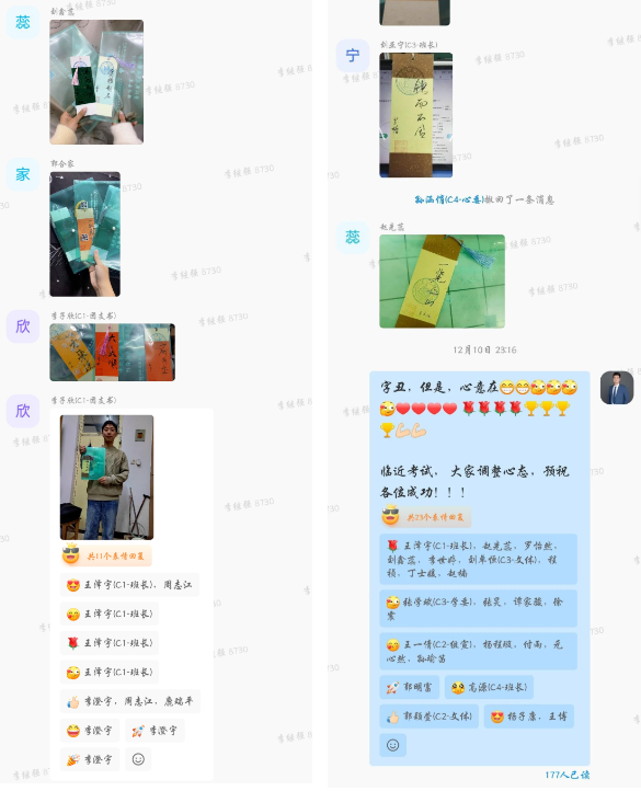 12月10日,老师们为同学们送上亲手书写的书签480张。每一张书签都蕴含着温暖与鼓励,温暖的文字如同点点星光,照亮考研学子前行的道路,给予他们心灵上的慰藉与支持。