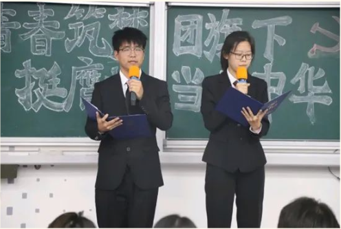 在激昂的团歌声中,团评活动拉开序幕。