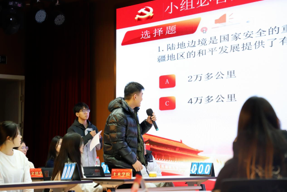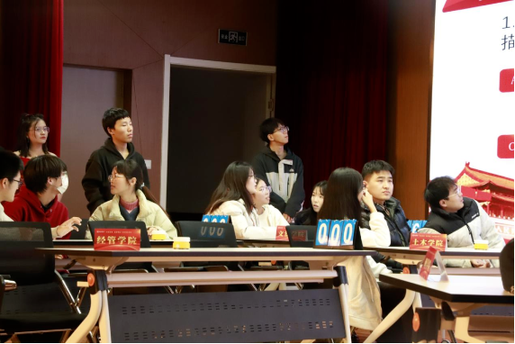 决赛环节,来自人文与法律学院、人工智能与数据科学学院、土木工程与交通学院、经济管理学院、生命科学与健康工程学院、理学院、化工学院、开云官方网页版官网的8组选手,通过必答题、抢答题、风险题、一题决胜等环节进行激烈角逐,现场300余名观众积极参与,气氛热烈。