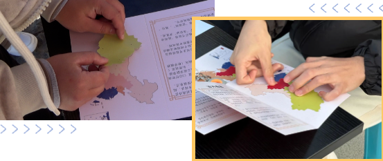打卡活动以中国人民解放军五大战区为背景,精心设置了五个闯关打卡点位,参与者在首个点位领取出征状,按指引顺序前往各个打卡点,在各点位学习五大战区相关国防知识,答题正确即可获得贴纸1张,最终集齐五大战区贴纸视为打卡成功。活动终点处设有主题绕绳活动,同学们用绳线将个人专业、家乡、发展目标与所在战区连绕在一起,直观感受国家安全与个人发展的紧密联系。