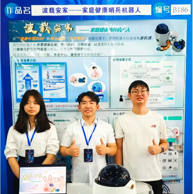 “波载安家——家庭健康哨兵机器人”由智能健康监测(以毫米波雷达为核心的新一代智能感知技术)、智能供药、万物速递(线驱动柔性机械臂+夹具库+自动换夹爪装置)、AI交互四大系统组成,以健康守护和万物速递功能为核心,并兼具情感陪护功能。除家用外,其日后可向医院、养老中心、健身房等多种场景推广。