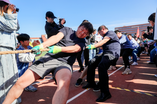 拔河赛场更是将气氛推向高潮。麻绳紧绷,老师们扎稳马步,齐心协力往后拉,青筋暴起,眼神却无比坚毅。他们拼搏姿态,为赛场添别样风采。