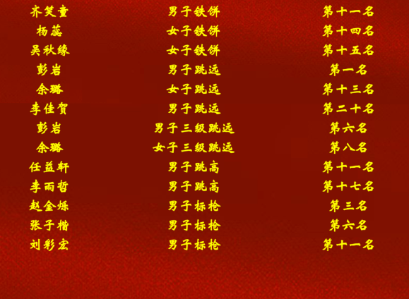 沙坑旁,助跑、起跳、腾空、落地,一连串动作行云流水,选手们奋力一跃,在空中划出优美的弧线。铅球、标枪、跳远三大项目火力全开,每一次发力,都是对自我极限的挑战,每一次突破,都赢得现场阵阵喝彩。