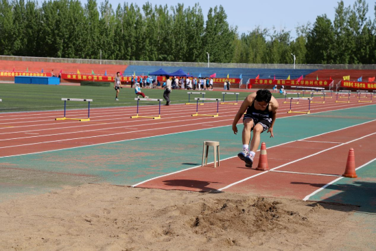 沙坑边,助跑带起的风扬起衣角,他们纵身一跃,自信的抛物线划过天空,彰显着青春活力。