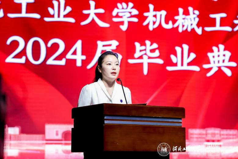 校友代表机电954班母彩军表示毕业晚会是同学们共同回忆和展望未来的时刻,愿学弟学妹们勇敢迎接挑战,实现梦想,成为社会的栋梁之才,河北工业大学天津校友会机械分会欢迎同学们的加入。