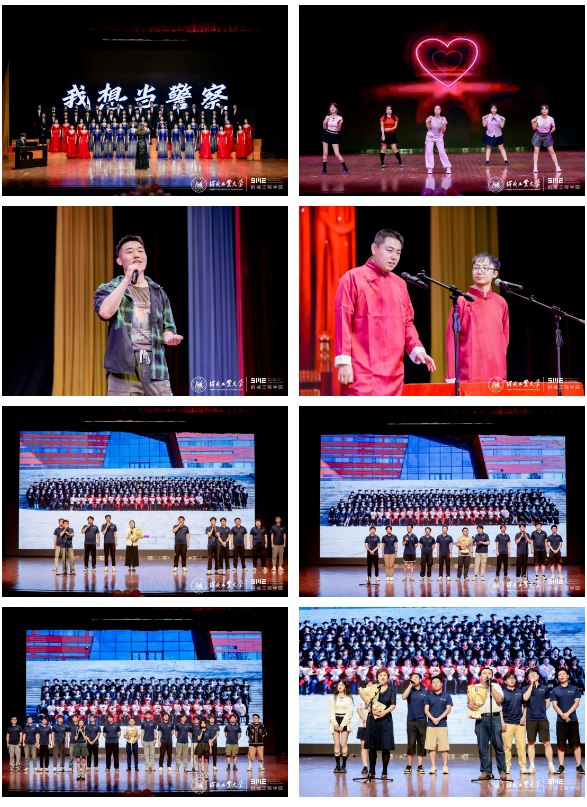 毕业典礼结束后,四位主持人缓缓上台,宣布毕业晚会正式开始。合唱《黑猫警长》、舞蹈、歌曲、相声等精彩纷呈的节目,一次次点燃会场。