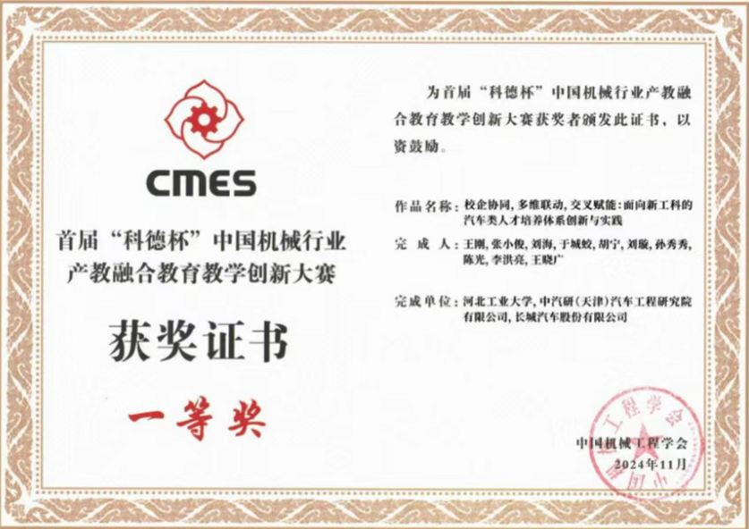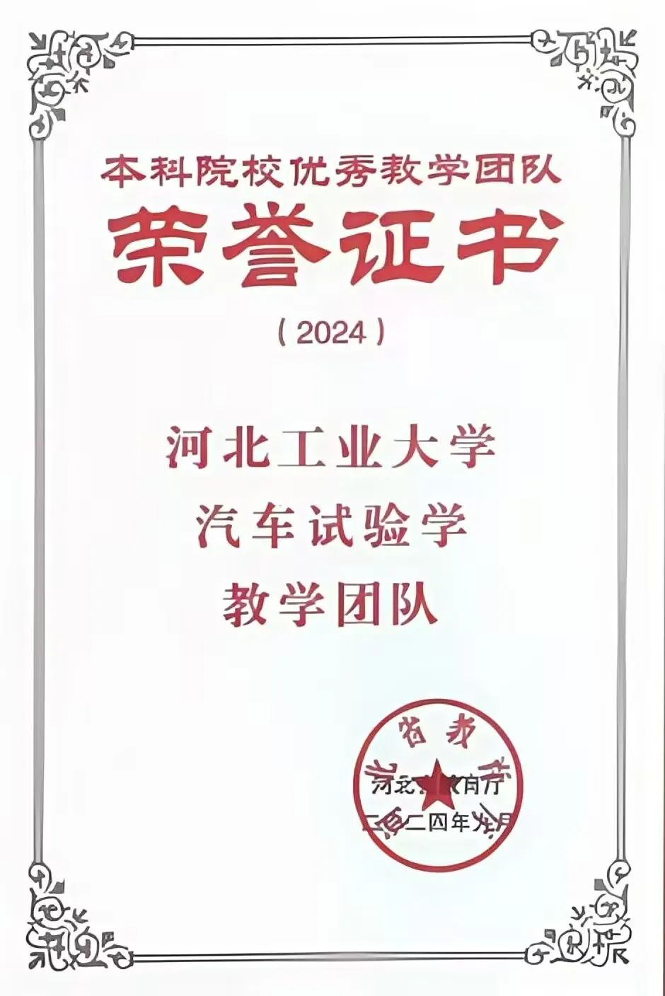 “汽车试验学教学团队”喜获2024年河北省普通本科院校优秀教学团队荣誉称号