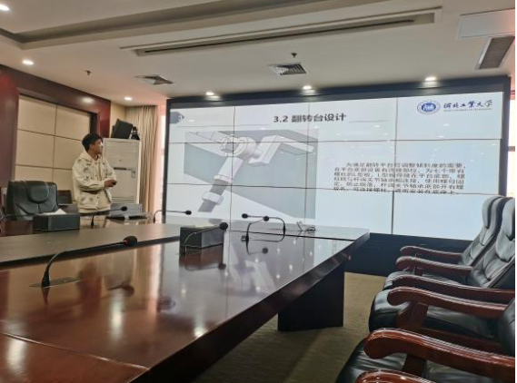 最后,在中铁山桥集团有限公司参加在岗实习的学生进行了校企联合毕业设计中期答辩。同学们详细地汇报了自己所承担的研究课题,并将自己所取得的阶段性研究成果向在场的老师进行了展示。无论是设计方案还是实验数据,每位学生都展现出了专业素养。在此过程中,校企双方的导师不仅为同学们提供了专业的指导,还对他们的研究成果进行了详细的评审,并就下一步的研究工作给出了具体建议。