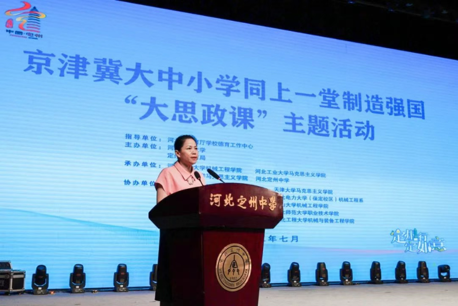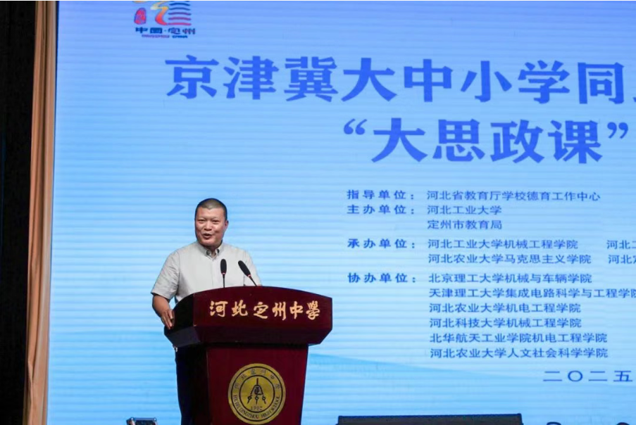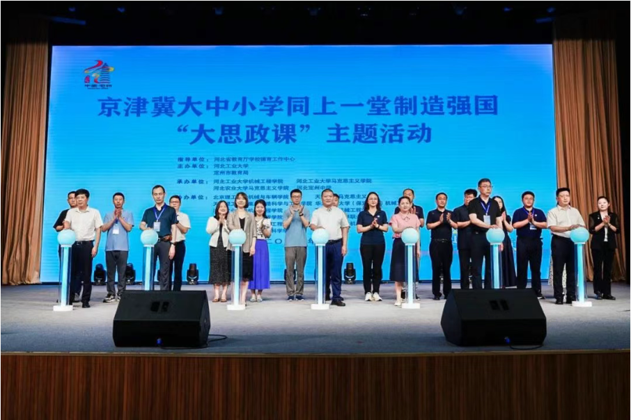 为深入贯彻落实习近平总书记关于制造强国的重要论述,充分发挥京津冀教育协同育人优势,立足大中小一体化育人格局,推动机械学科育人端口前移及其与思政教育的深度融合,由河北省教育厅学校德育工作中心指导,河北工业大学、定州市教育局主办的京津冀大中小学同上一堂制造强国“大思政课”主题活动,于7月10日-11日河北省定州市开展。河北省教育厅学校德育工作中心主任蔡杭州、京津冀大中小学师生代表参加活动。