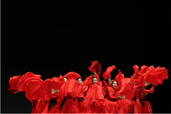 《星星之火》以“星火燎原”为精神内核,将绸扇作为核心艺术载体,让革命信仰在舞与扇的交融中具象呈现。舞者轻扇开合,似星光簌簌抖落;舞步流转间,又将理想火种悄然点燃,生动演绎出从“星火聚散”到“燎原成势”的壮阔历程。