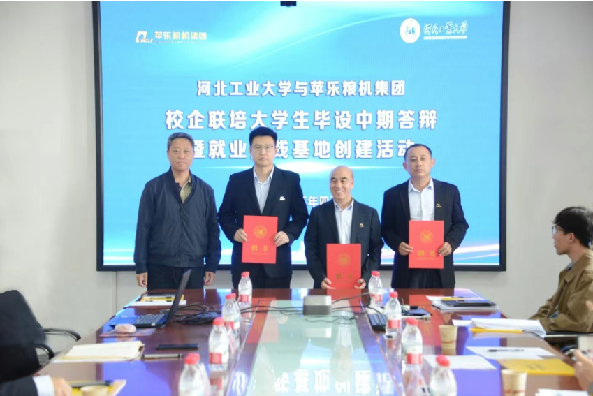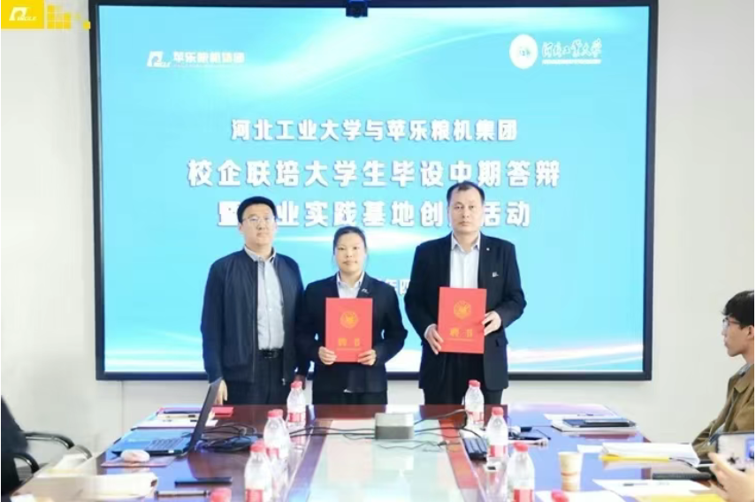 产教融合:机械设计制造及其自动化系与苹乐粮机集团举行实习实践基地授牌仪式暨校企联合毕业设计中期答辩
