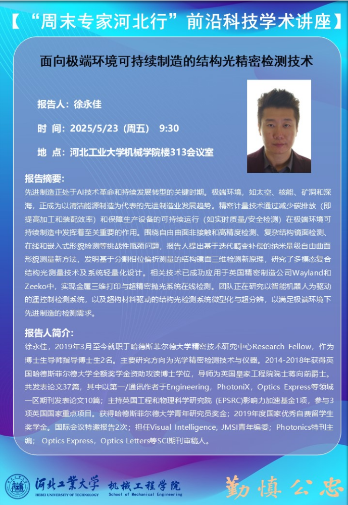 “周末专家河北行”前沿科技学术讲座-面向极端环境可持续制造的结构光精密检测技术